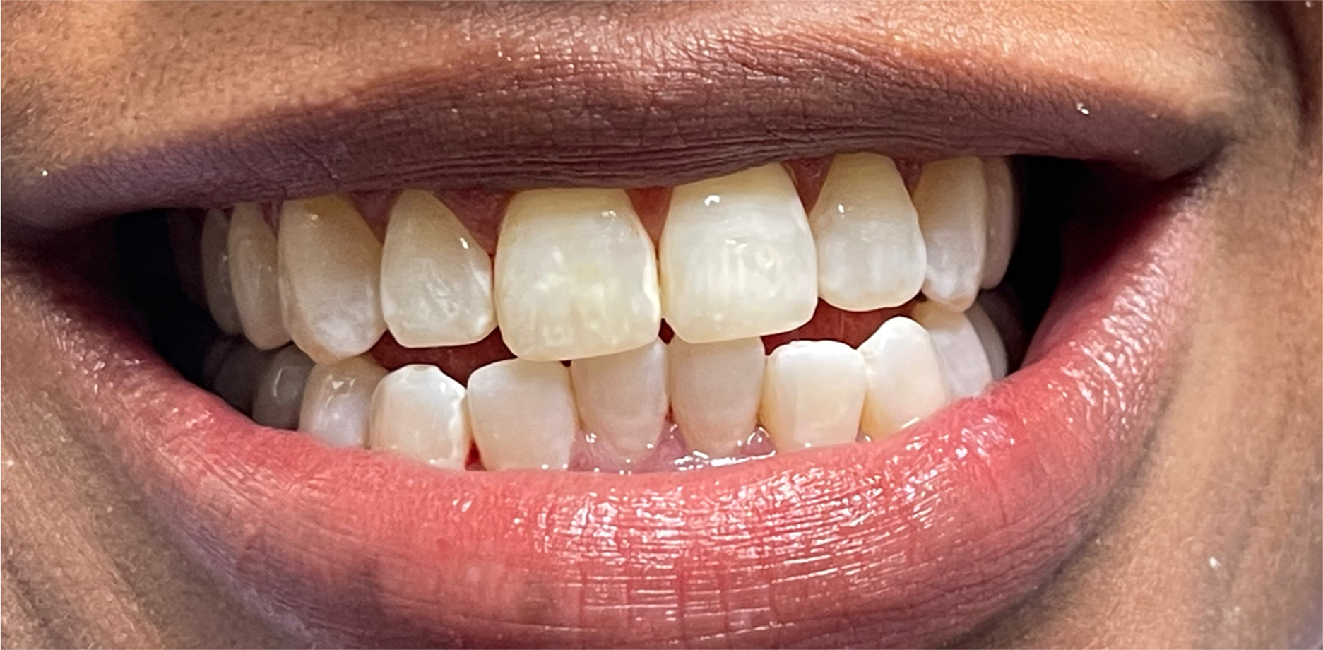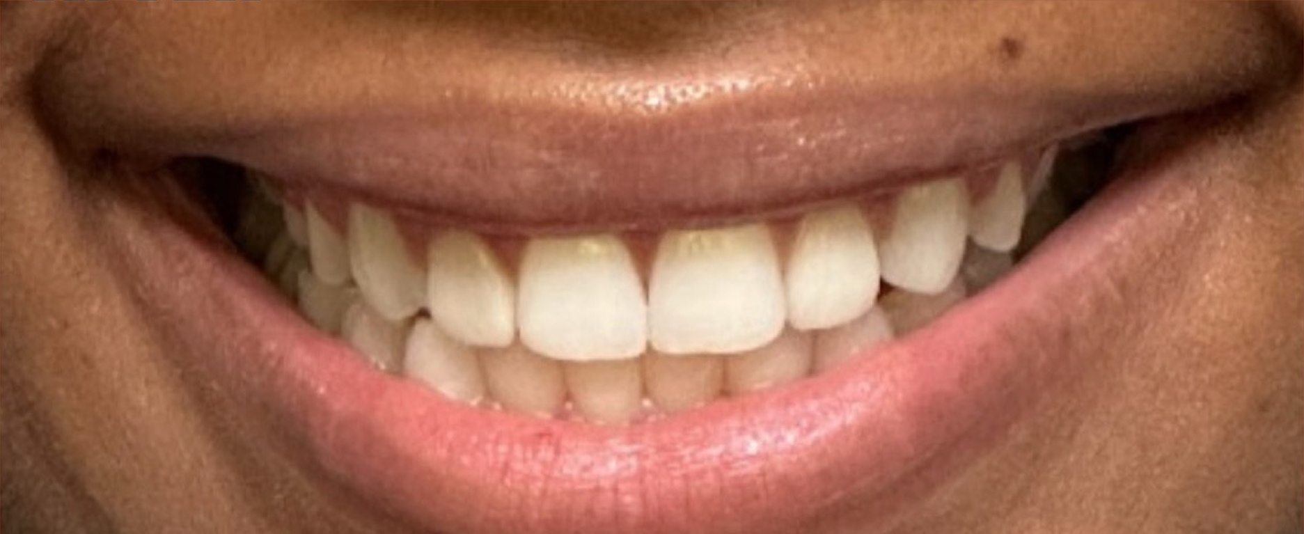 This patient was self-conscious about the gaps between her front teeth and the uneven alignment of her smile. The spacing made her hesitant to smile openly in photos and social situations. She wanted to close these gaps and create a more uniform smile line but preferred a treatment option that wouldn't be noticeable to others.
