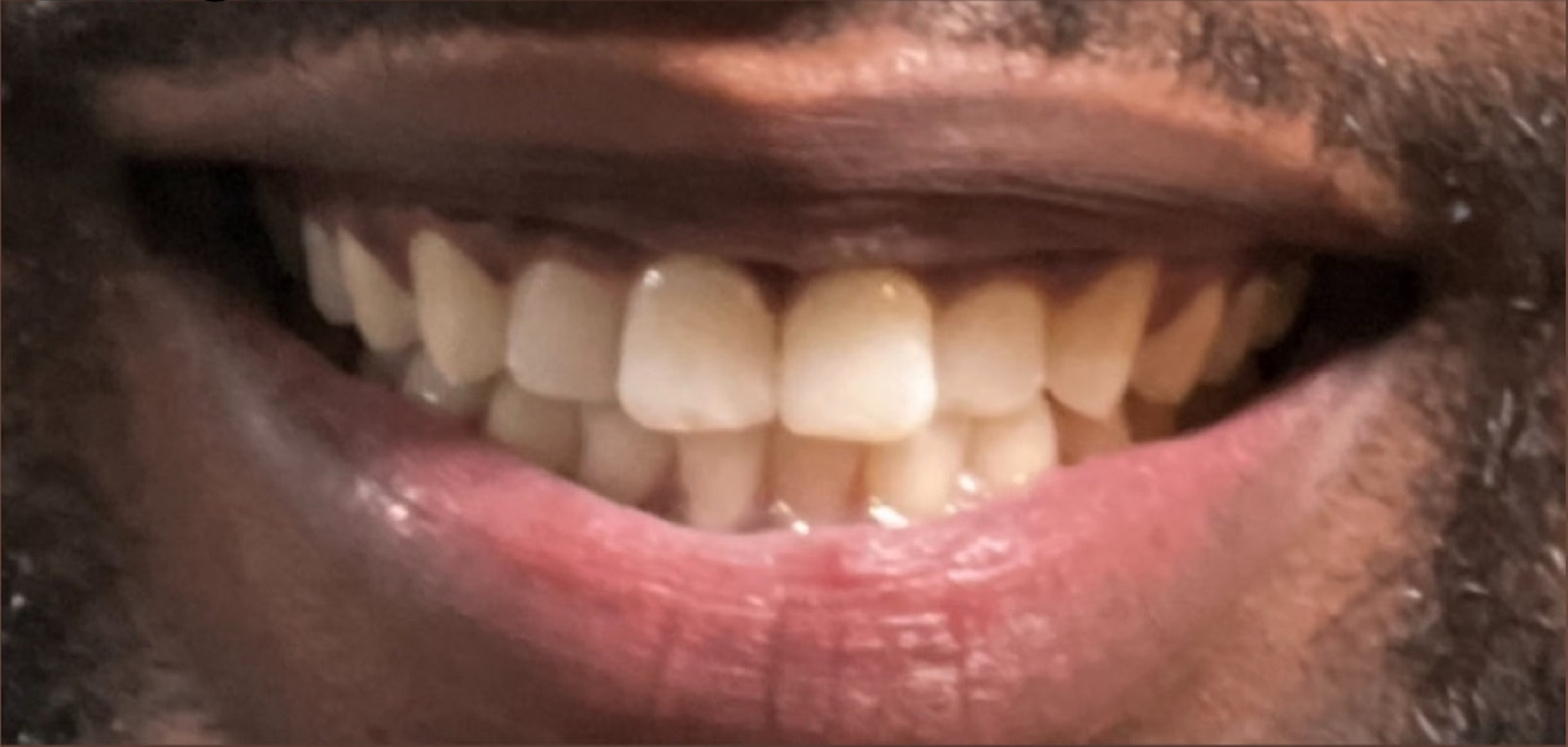After a professional in-office whitening treatment, this patient's teeth are several shades lighter — noticeably whiter, brighter, and more uniform in tone. Professional-grade whitening gel safely penetrates the enamel to break up deep stains that store-bought products can't reach. One visit delivered results that would take weeks of at-home treatment to achieve, with a custom take-home kit to maintain the brightness long-term.