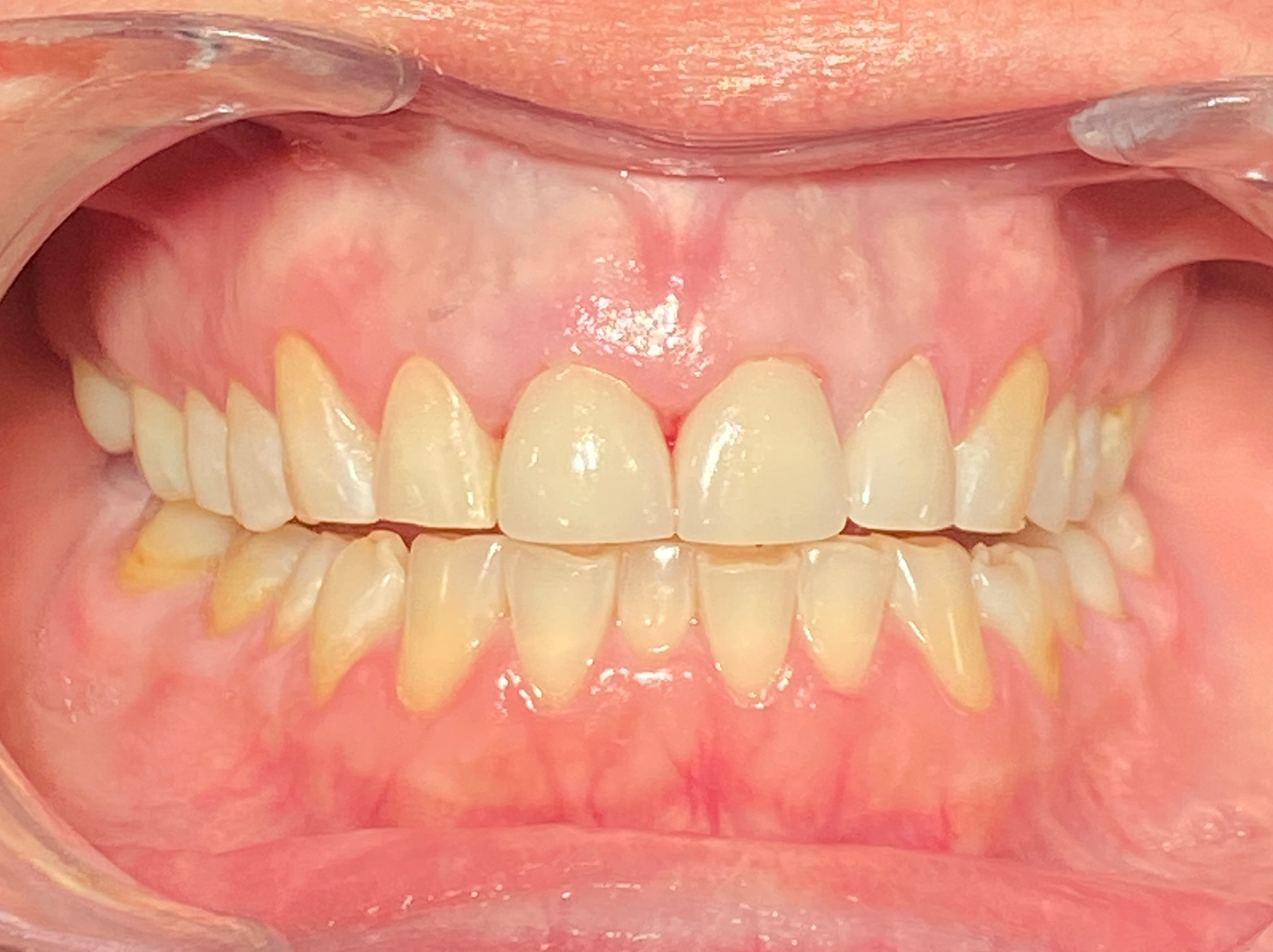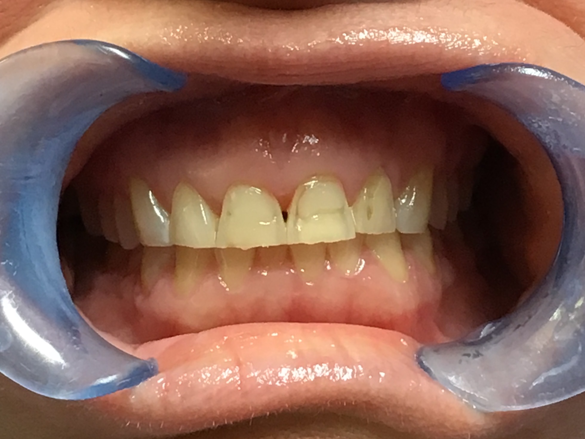 This patient came in with heavy yellowing and brown staining that had built up over years. The discoloration was particularly noticeable on the front teeth, creating an aged appearance that made them hesitant to smile openly. Over-the-counter whitening products had failed to make any meaningful difference on these deeper, more stubborn stains.
